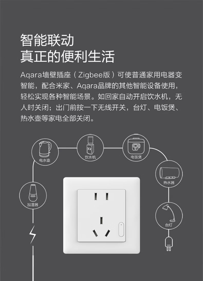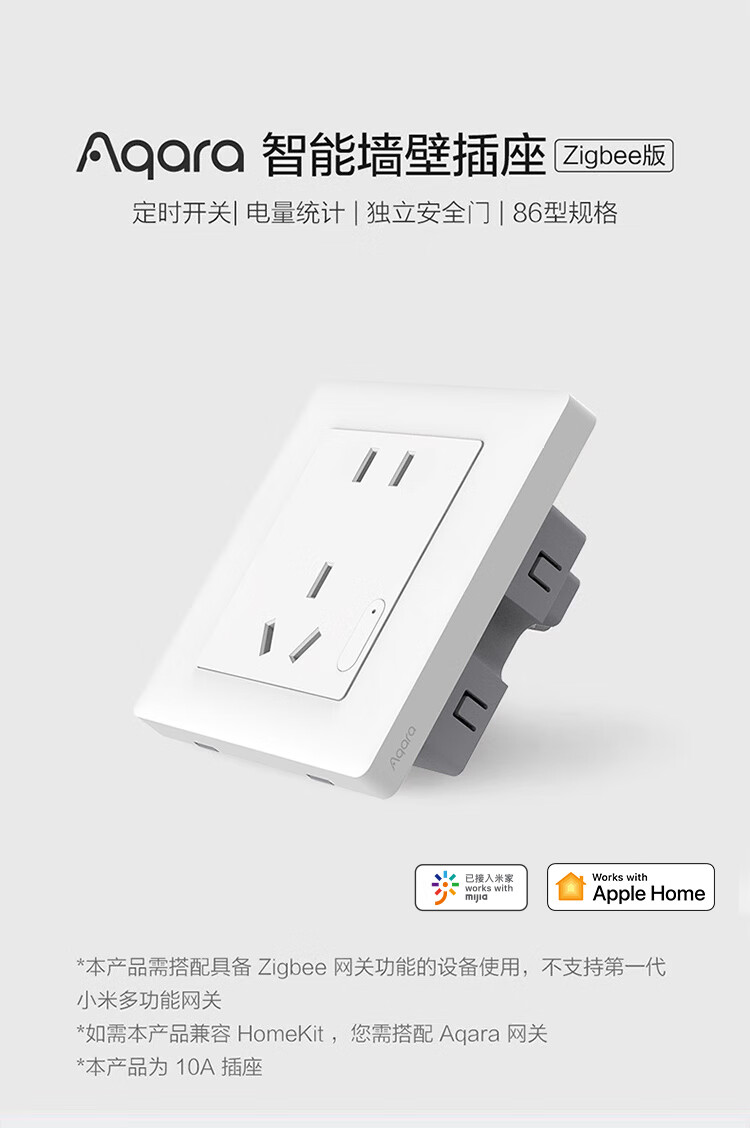 Aqara绿米 智能墙壁插座 接入米家App/苹果智能联动 10A五孔带开关
