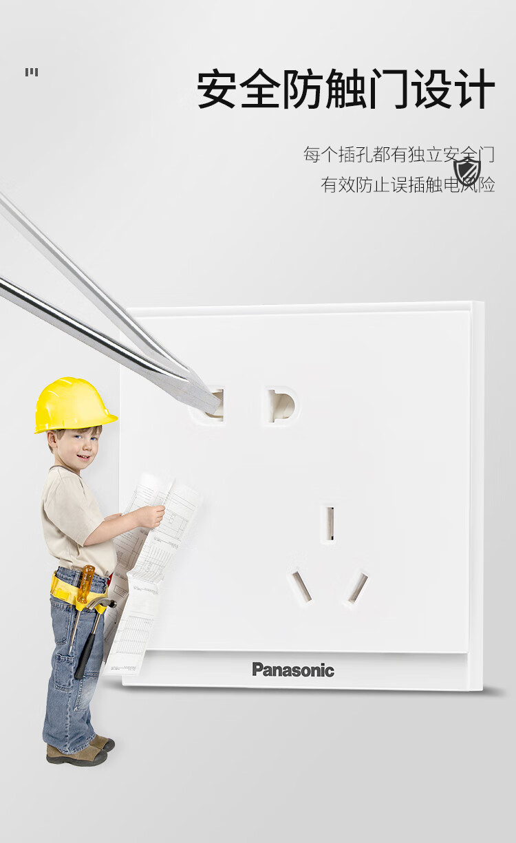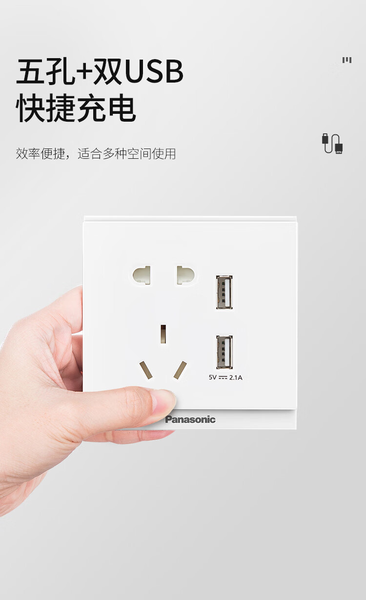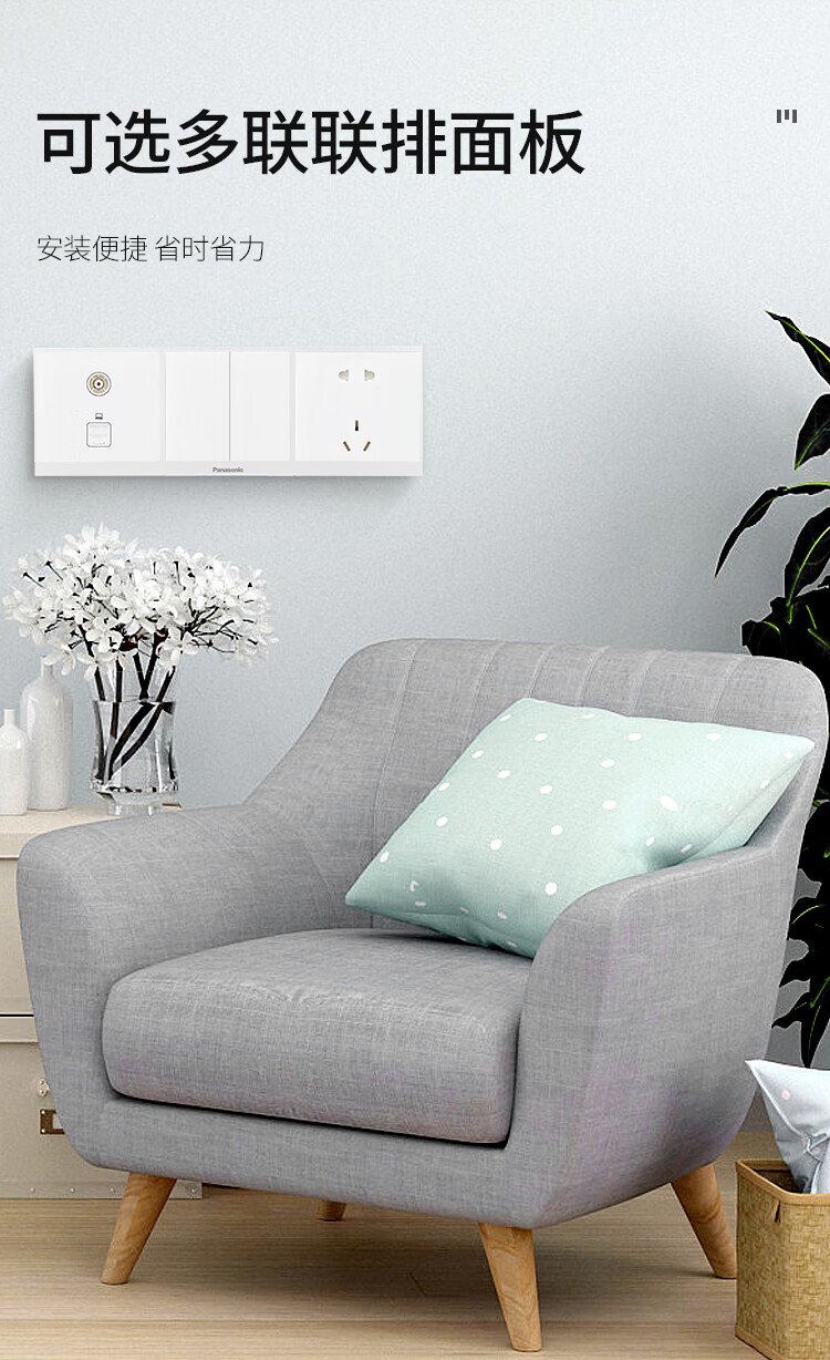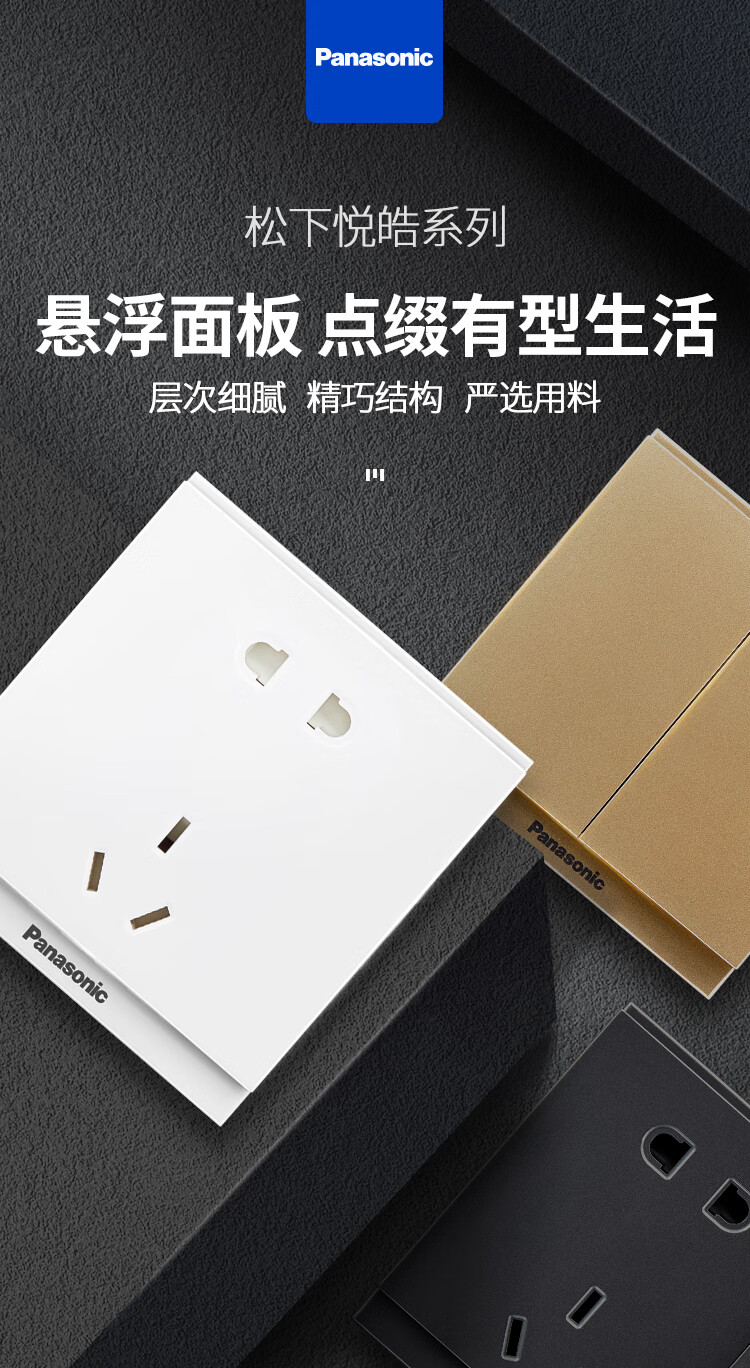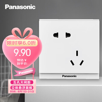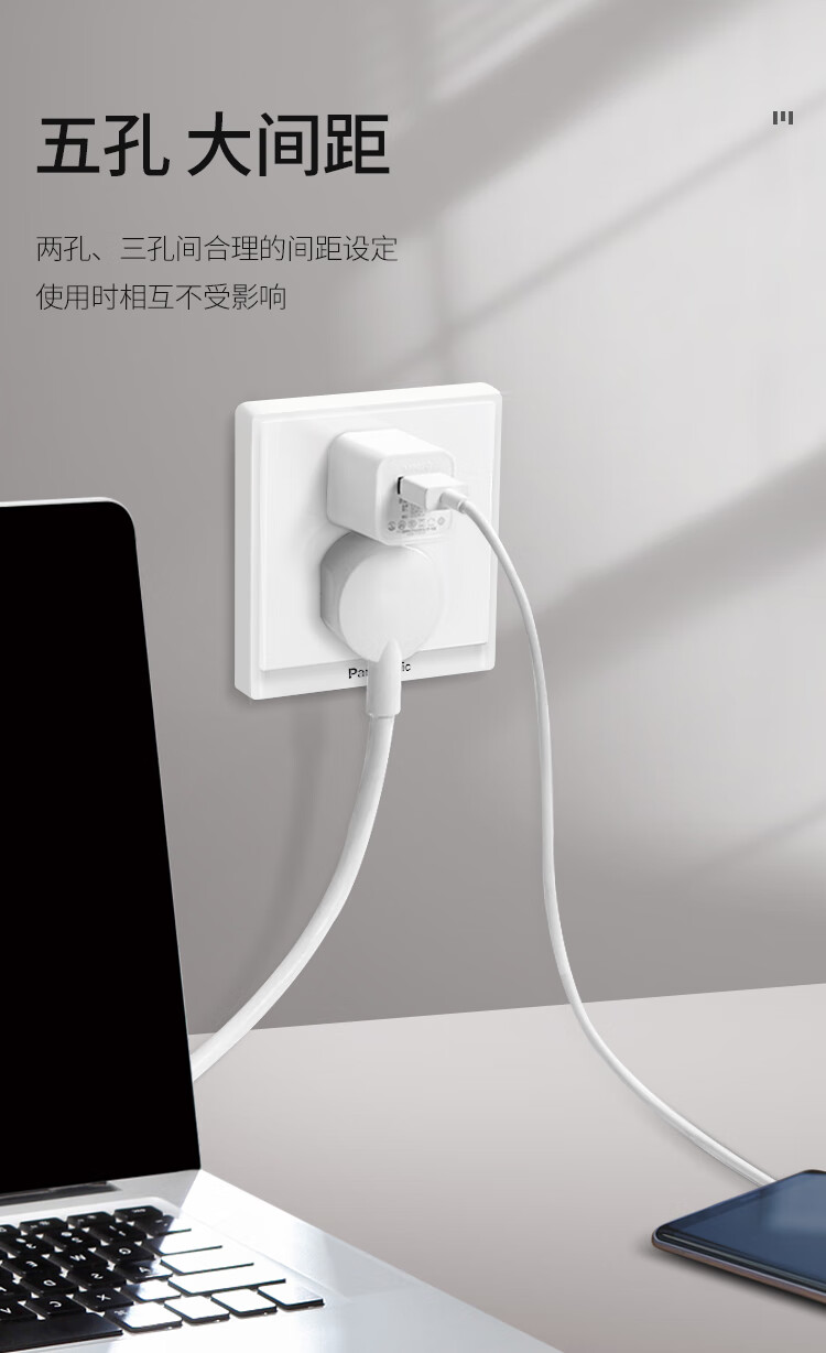 松下(Panasonic)开关插座面板 斜五孔插座 10A5孔墙壁插座 悦皓白 WMWF123