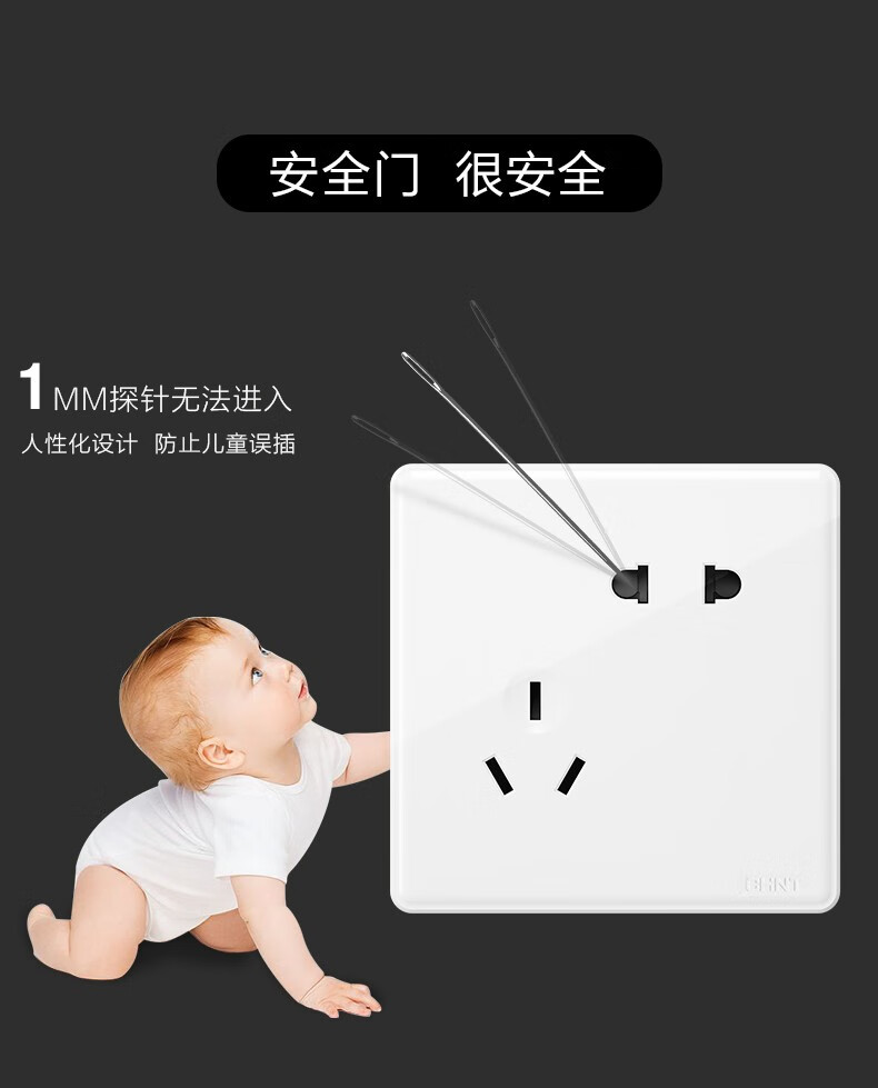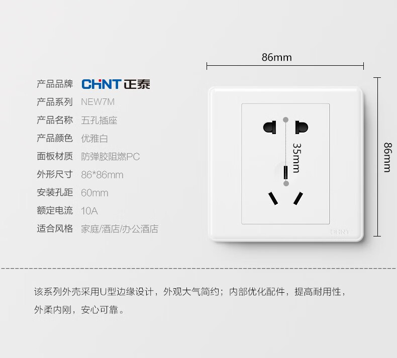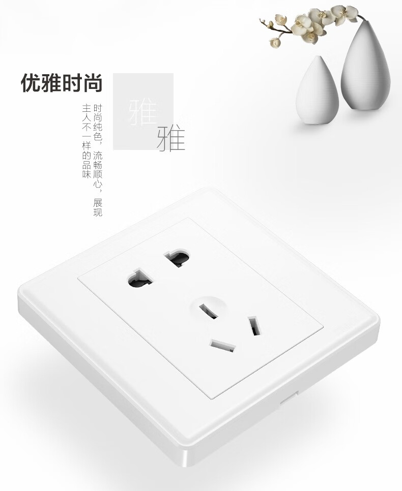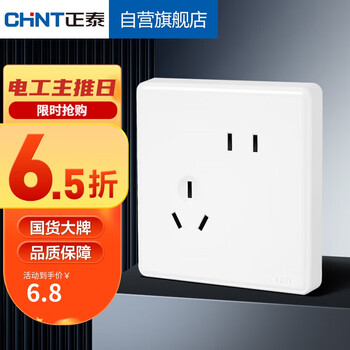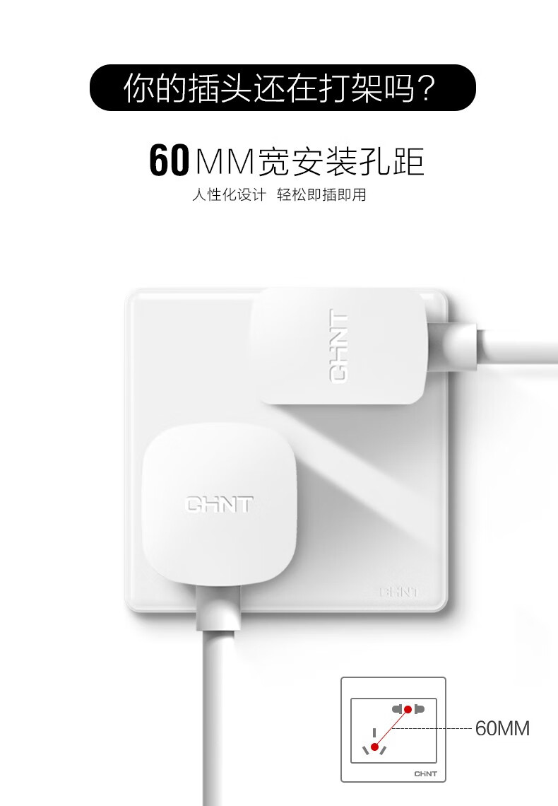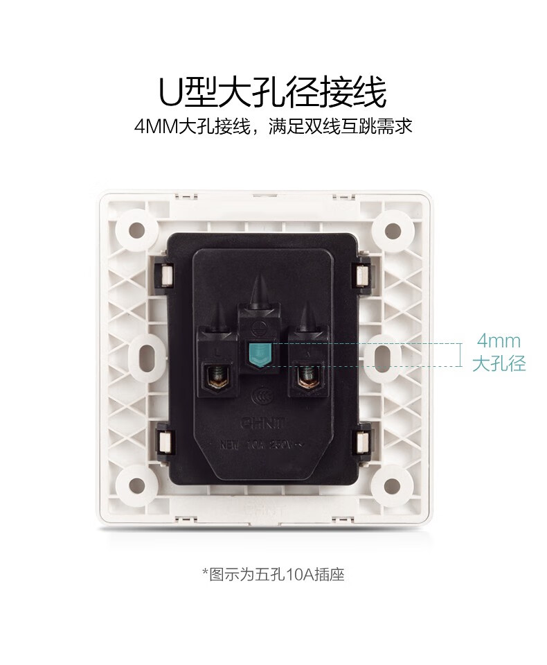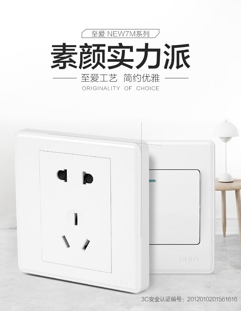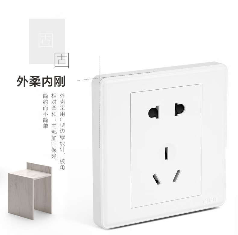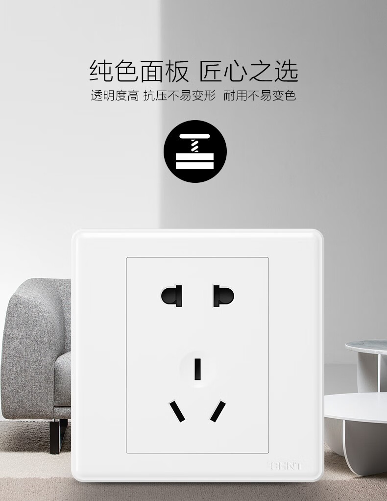 正泰(CHNT)开关插座墙壁面板家用86型面板一联二极三极插座斜五孔插座7M白色