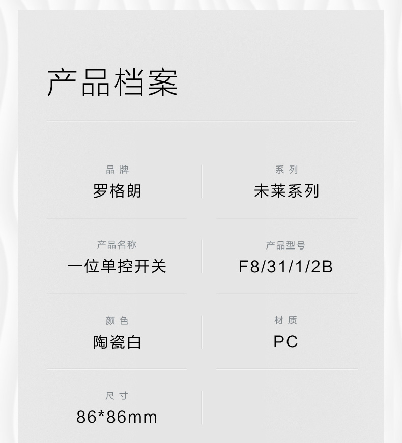 罗格朗开关插座面板 未莱系列陶瓷白色开关 单开单控