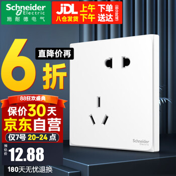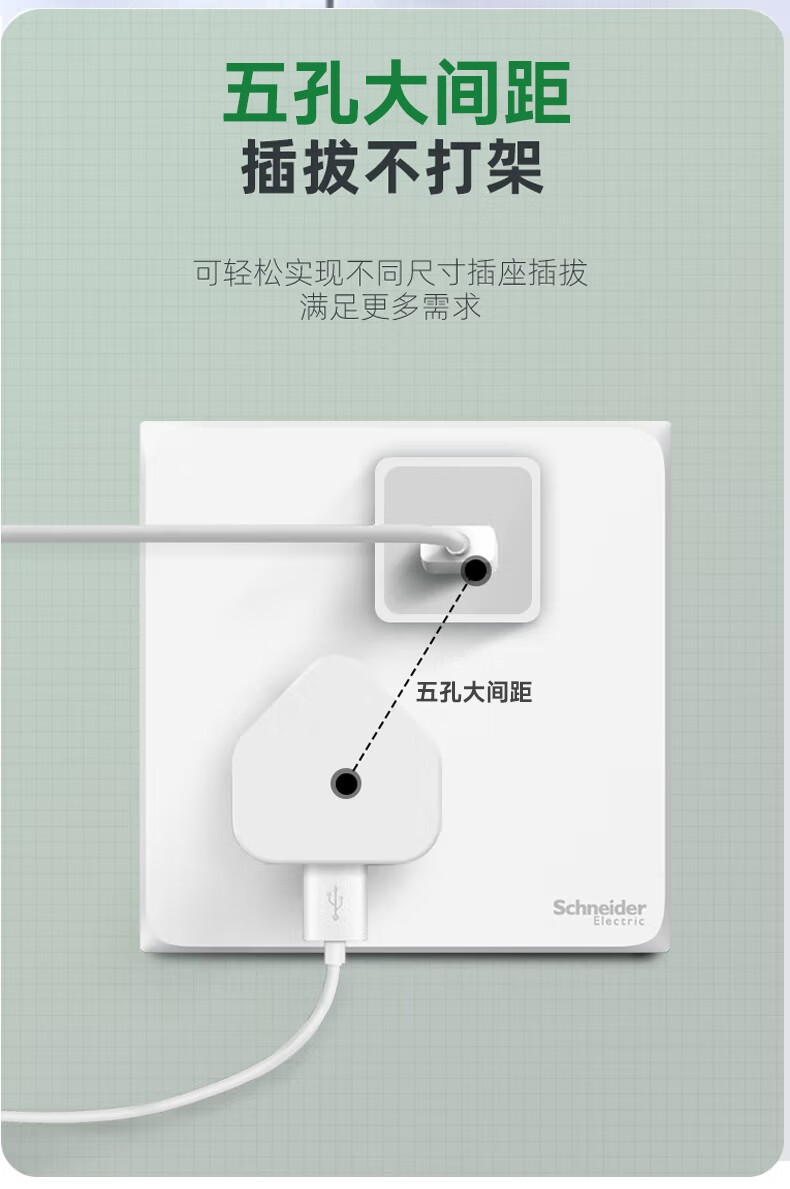施耐德开关插座面板86型墙面10A斜五孔插座面板 皓呈系列奶油白色 错位五孔单只