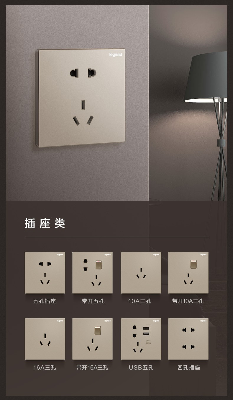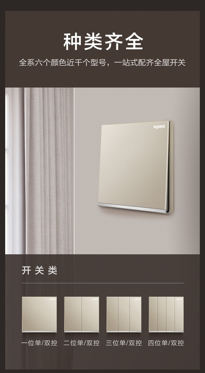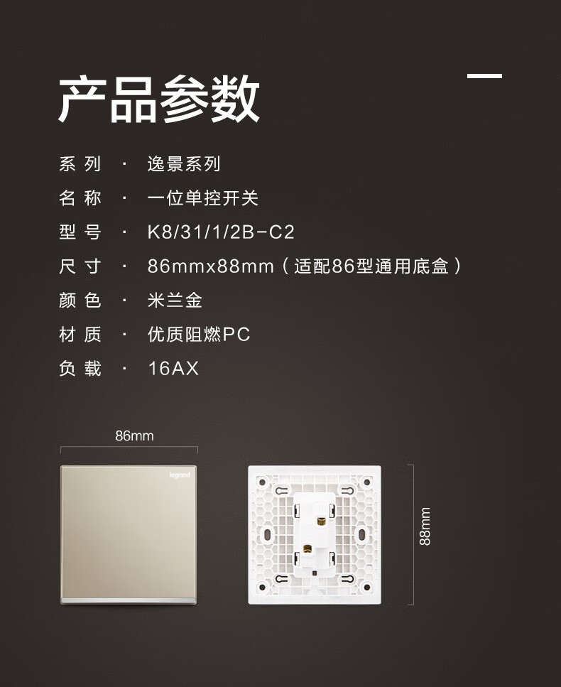 罗格朗(LEGRAND)开关插座面板86型逸景米兰金大面板墙壁电源插座开关 单开单控