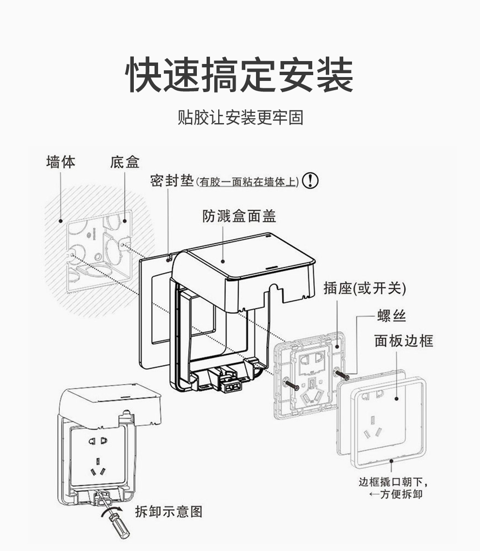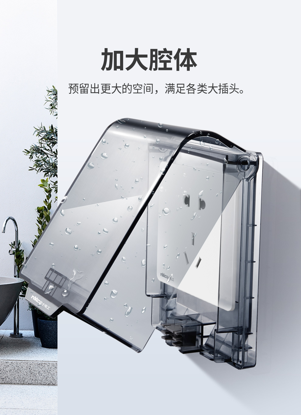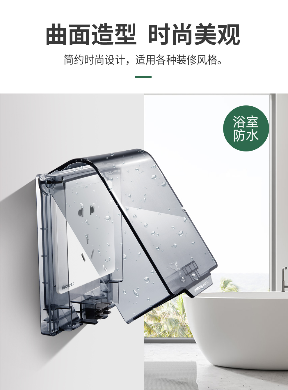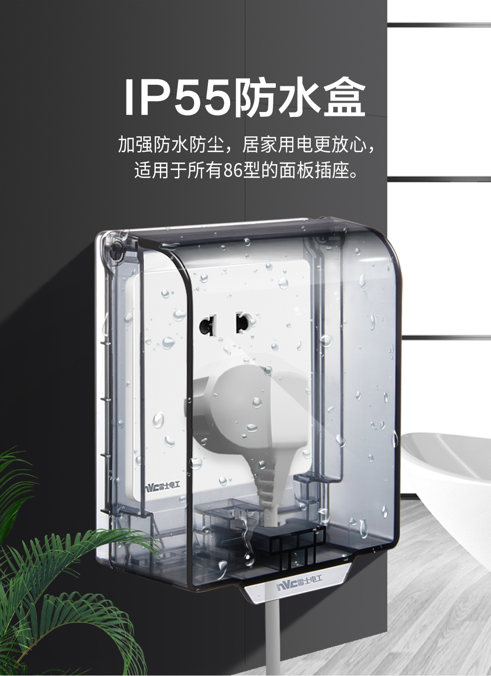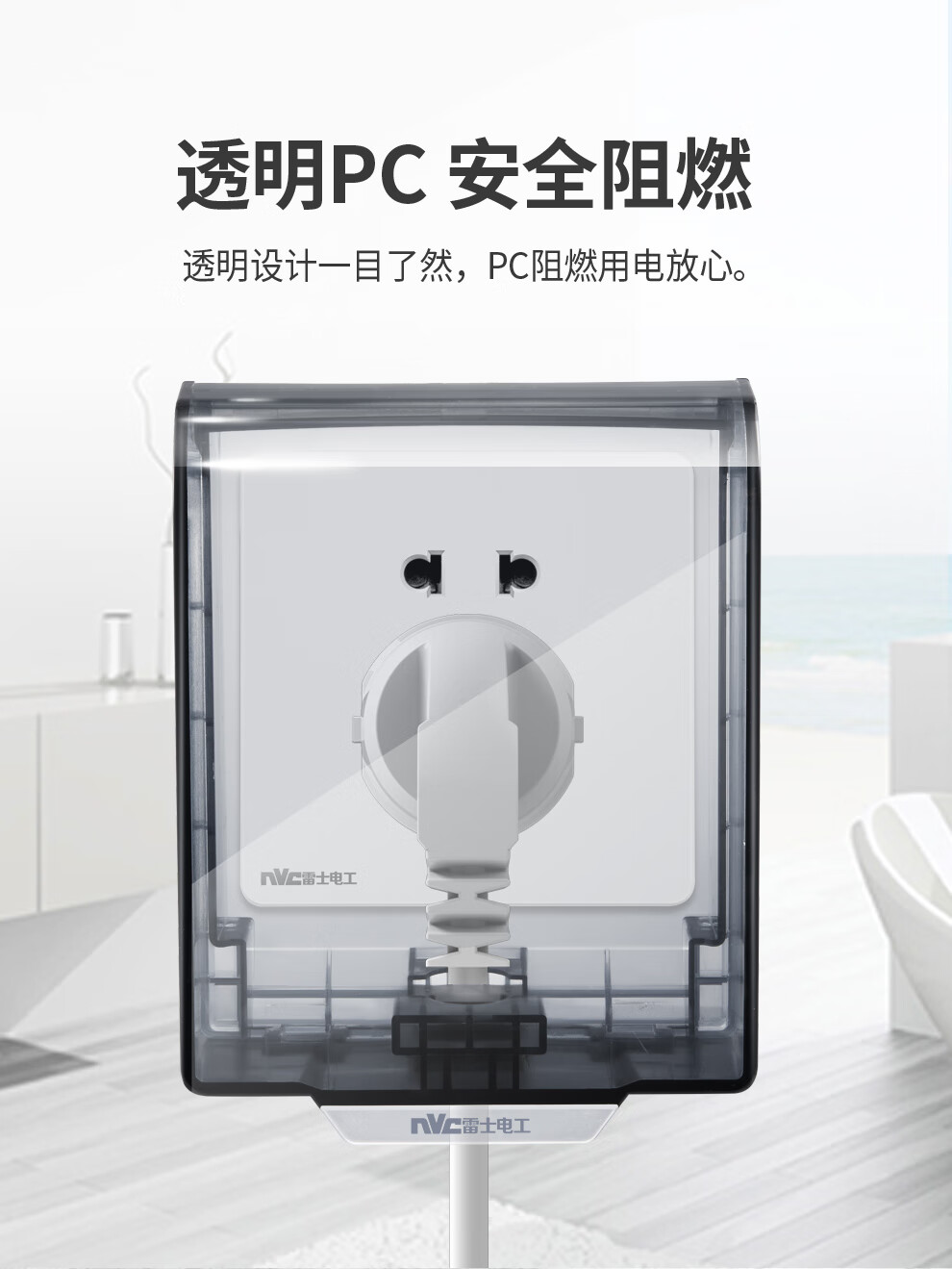 雷士电工(NVC) IP55 插座防水盒 卫生间浴室开关86防水罩 插座保护盖 防溅盒