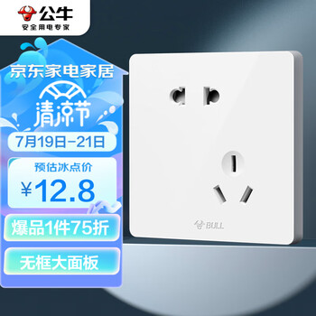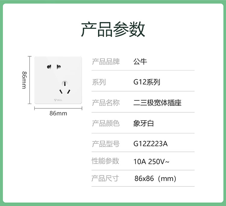 公牛(BULL)开关插座G12系列10A斜五孔插座G12Z223A象牙白暗装