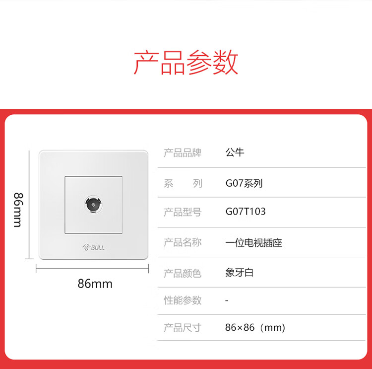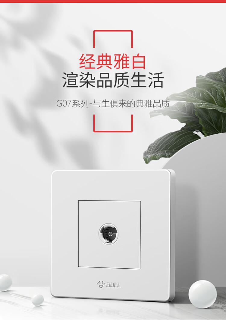 公牛(BULL)墙壁插座 G07系列 一位电视插座 360度弯头 G07T103 白色 暗装