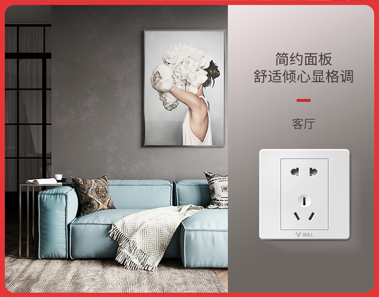 公牛(BULL)开关插座G07系列10A斜五孔插座G07Z223A象牙白暗装