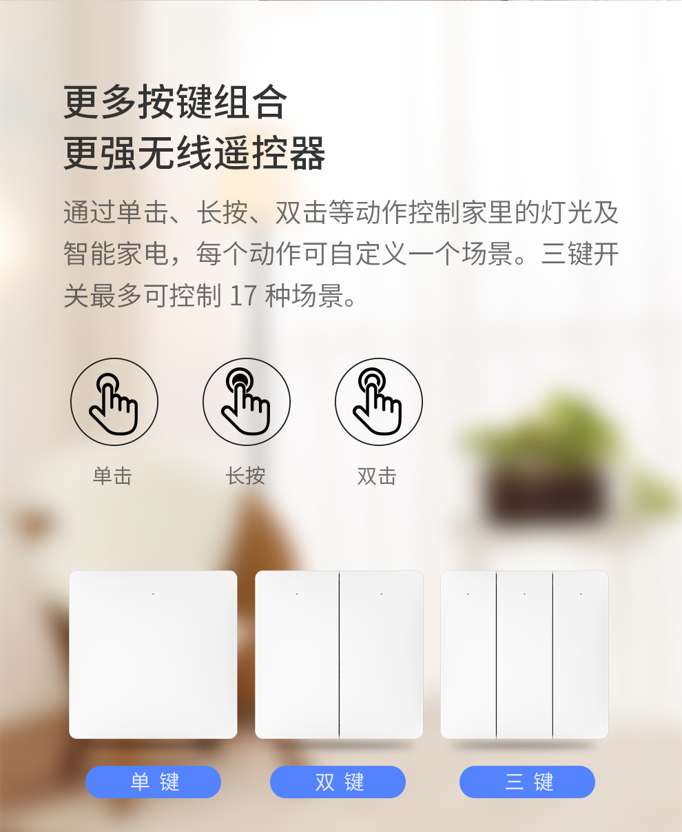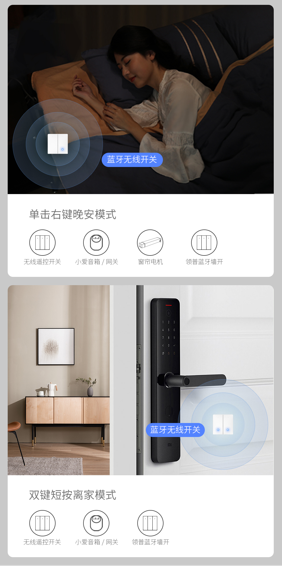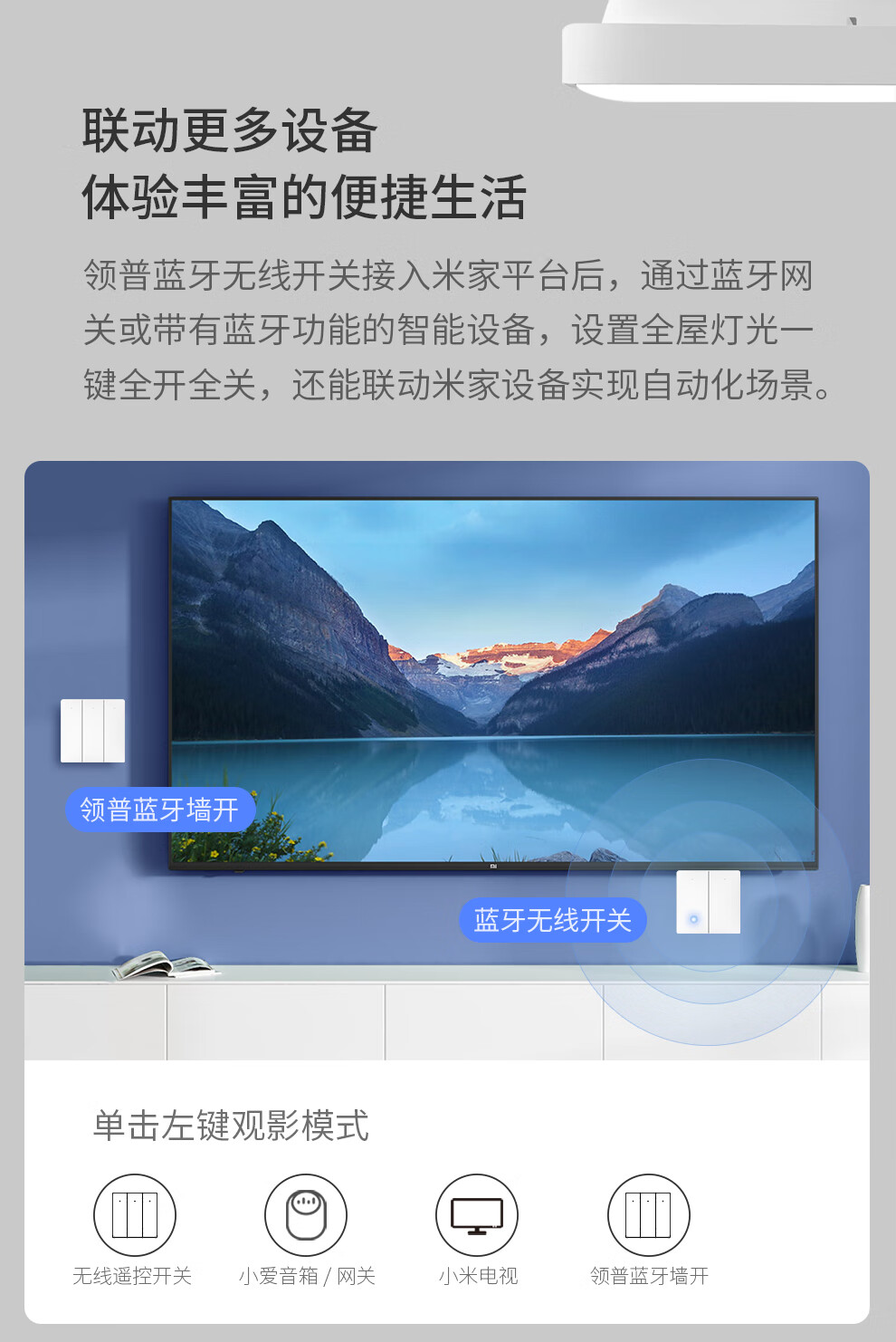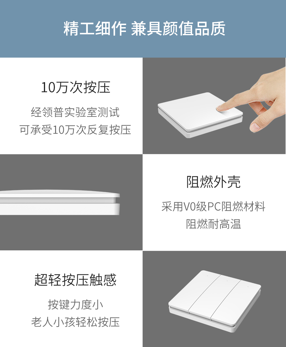 接入米家的领普linptech无线蓝牙开关。免布线随意贴。单控变双控。可上86开关盒