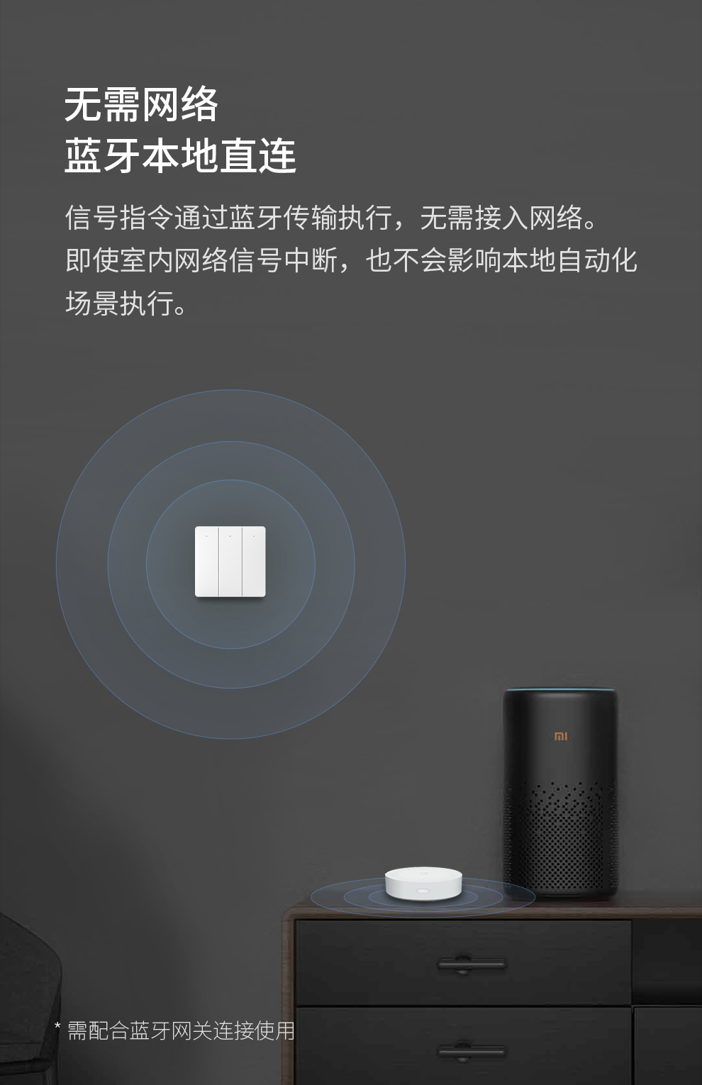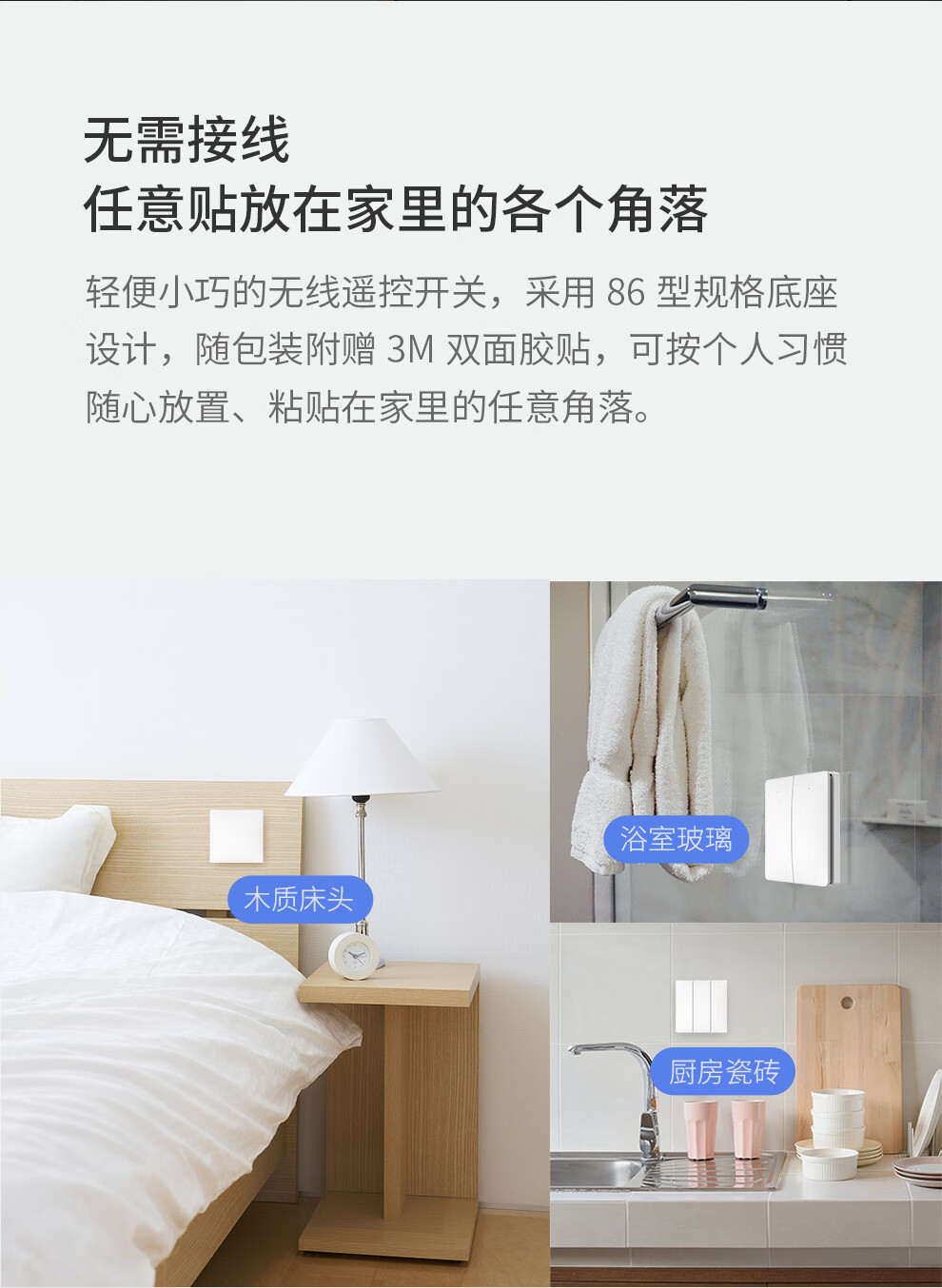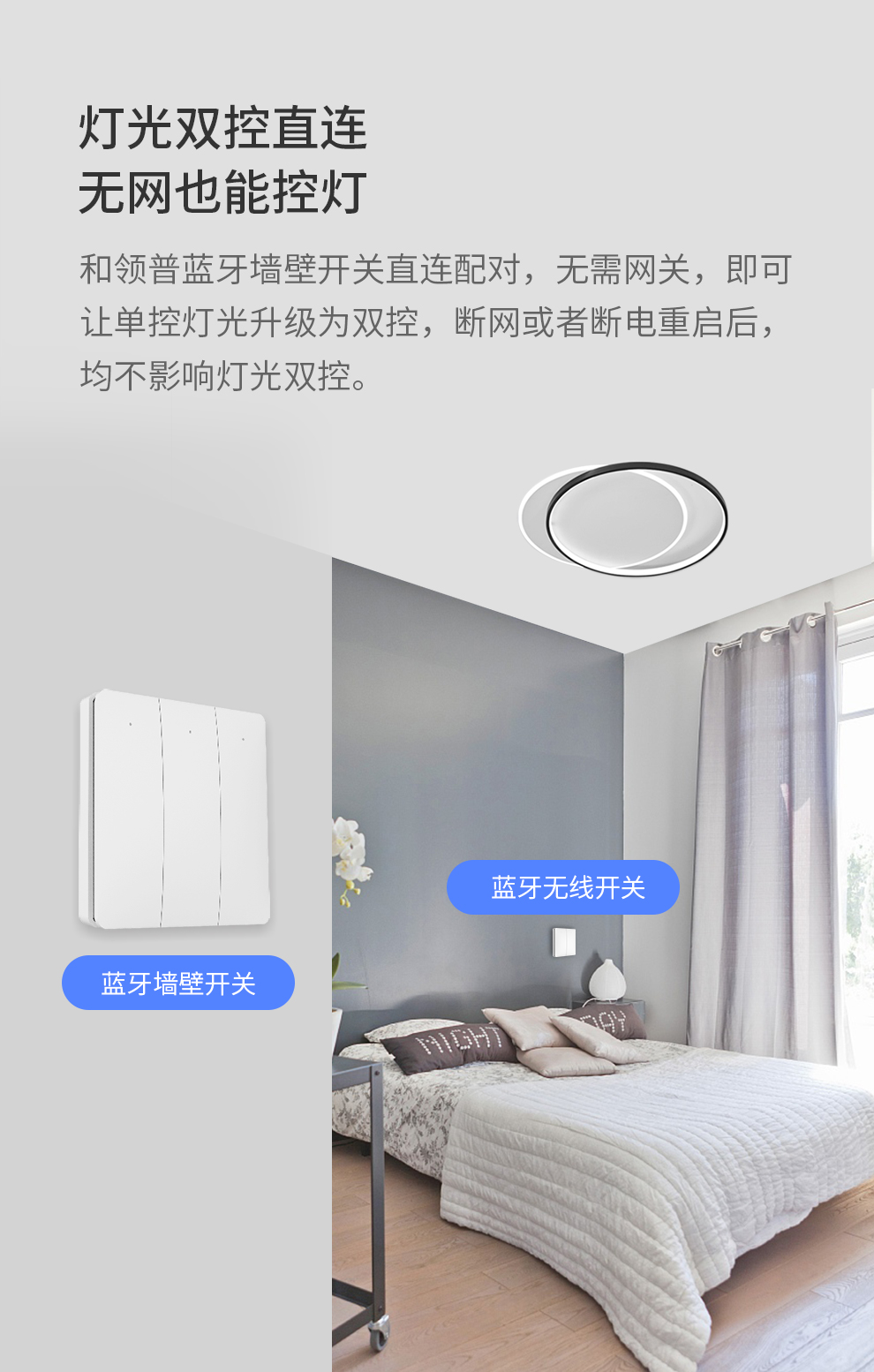 接入米家的领普linptech无线蓝牙开关。免布线随意贴。单控变双控。可上86开关盒