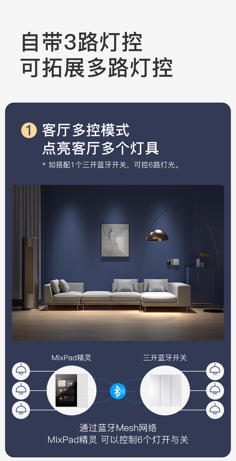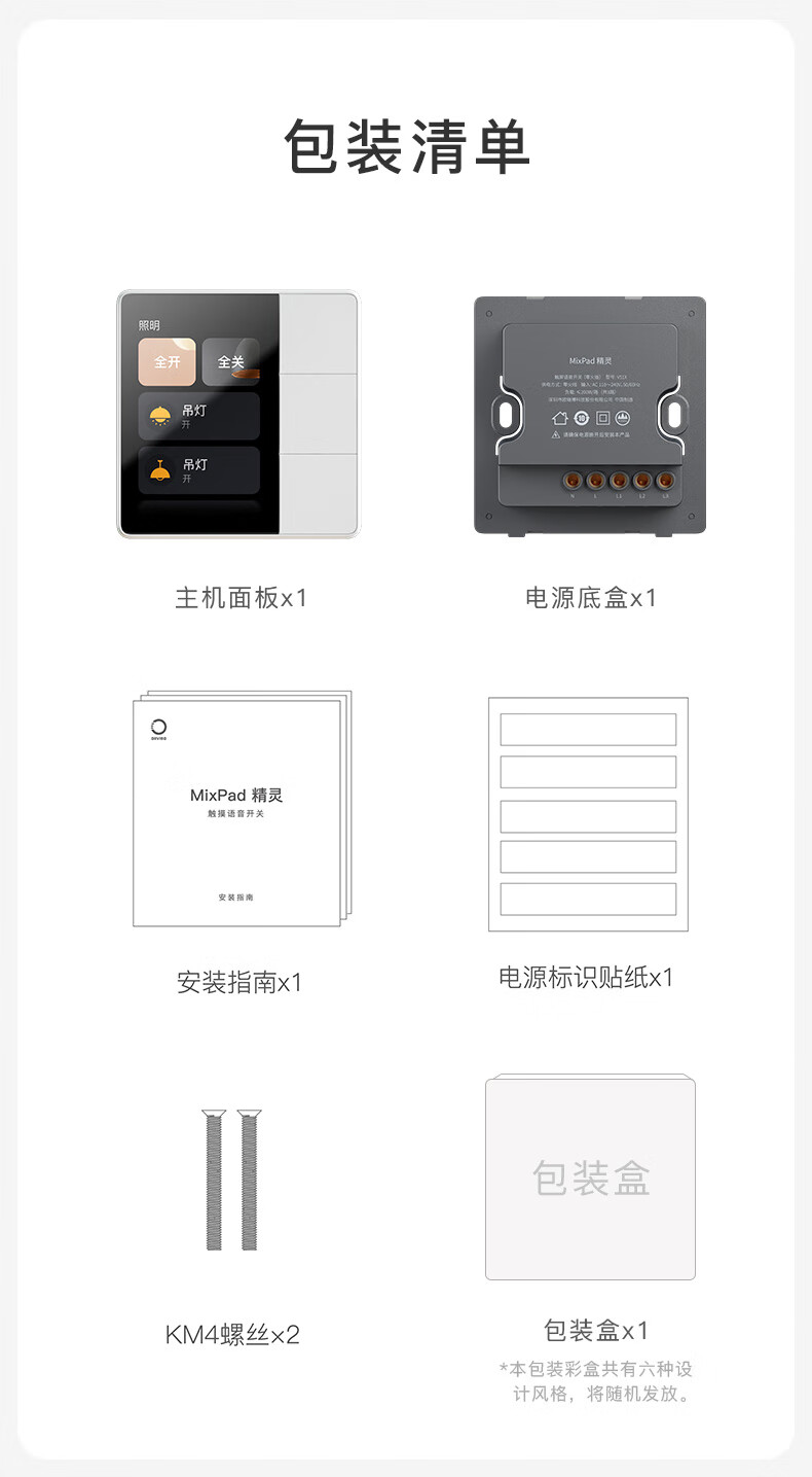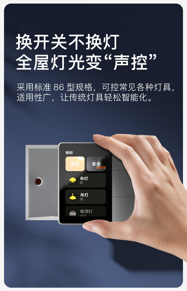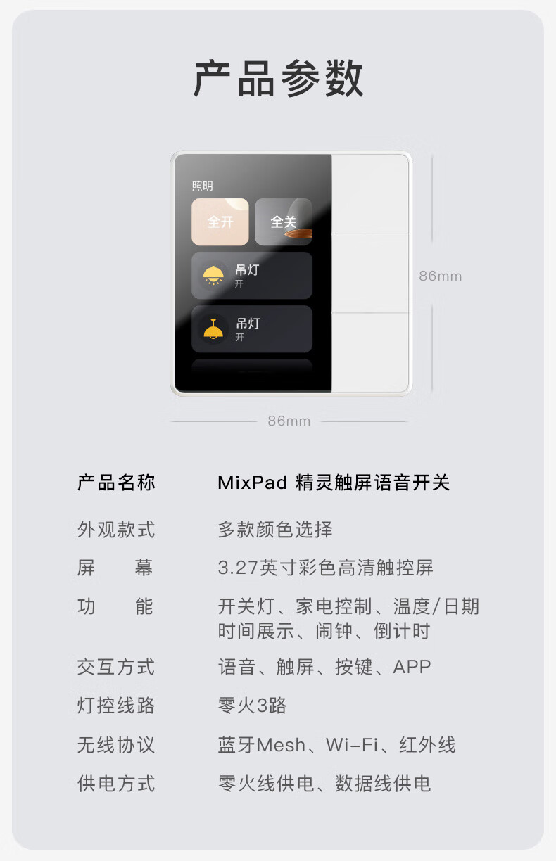 欧瑞博MixPad精灵智能开关可声控开关灯遥控开关免布线安装开关插座86型底盒支持精灵音箱 触屏语音开关(零火)-星空灰