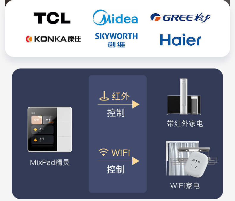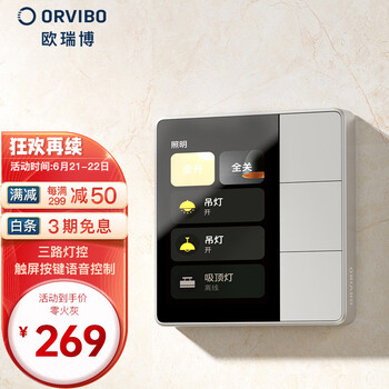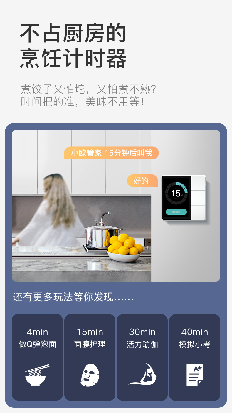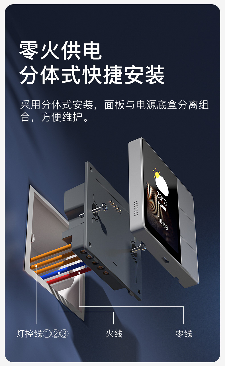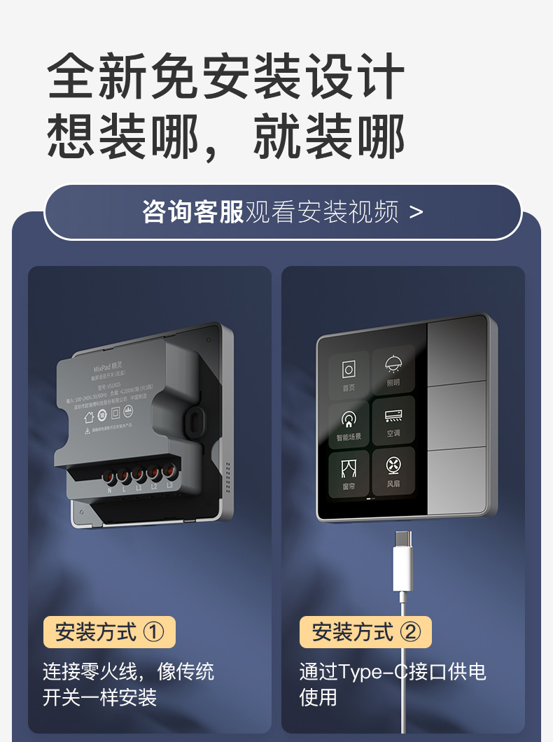欧瑞博MixPad精灵智能开关可声控开关灯遥控开关免布线安装开关插座86型底盒支持精灵音箱 触屏语音开关(零火)-星空灰