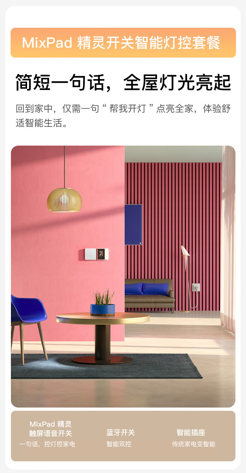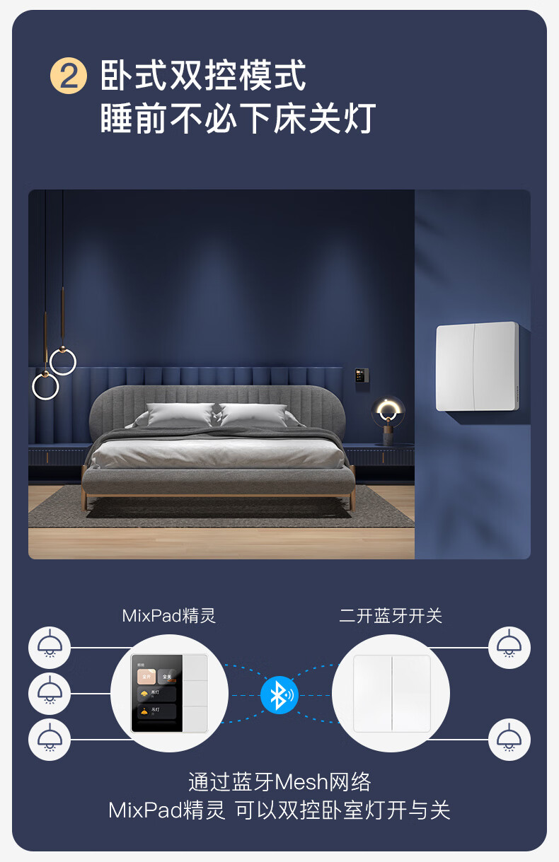 Yeelight易来凌动开关墙壁开关支持SLISAON自回弹不离线技术 双开