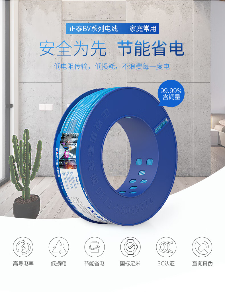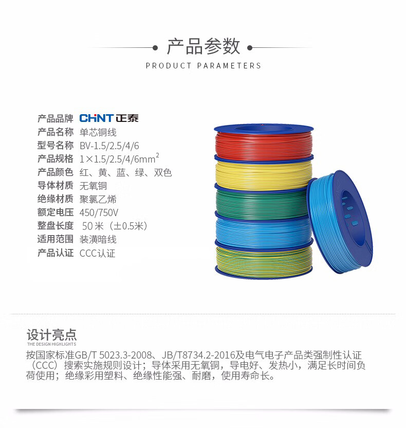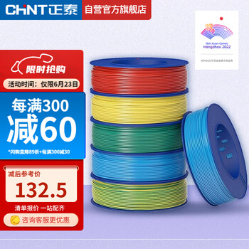 正泰(CHNT) 电线电缆 BV2.5平方 红色单芯单股火线 国标铜芯硬线 家装照明插座用线50米