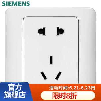 西门子开关插座 远景系列雅白色10A五孔二三插墙壁大间距正5孔/斜五孔插座 单只装