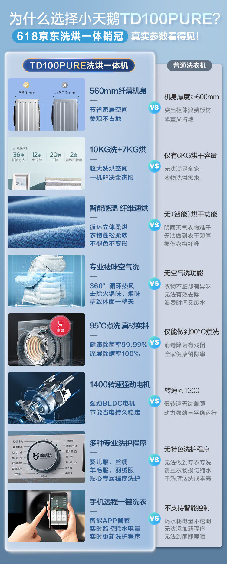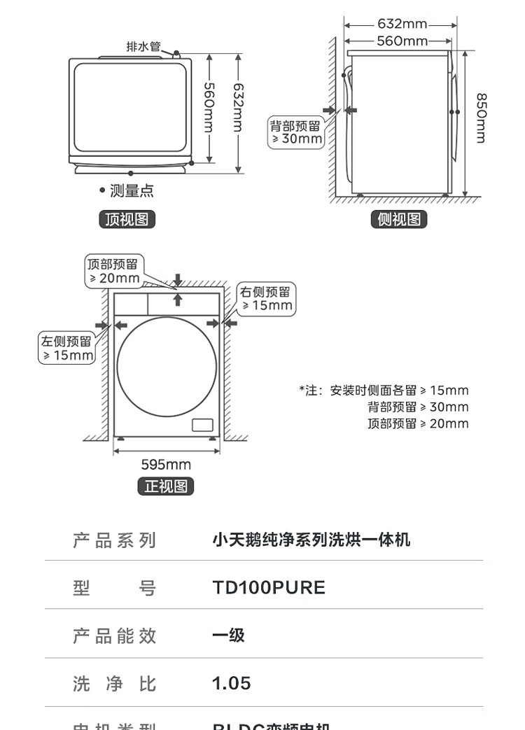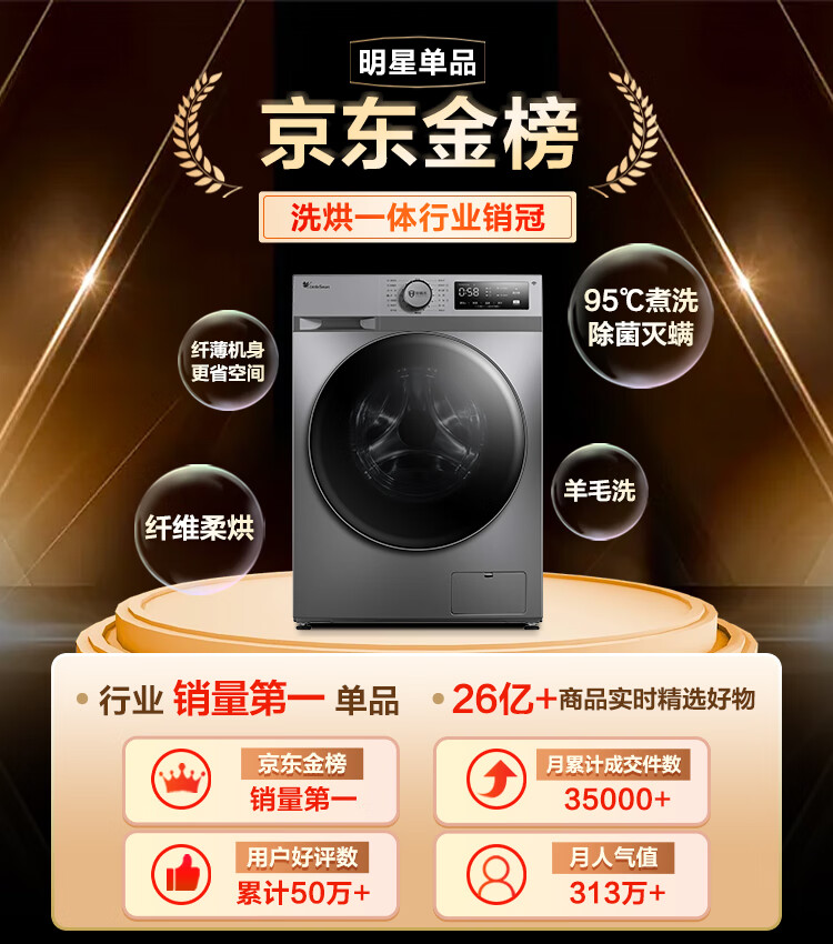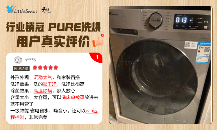 小天鹅(LittleSwan)滚筒洗衣机全自动 洗烘一体机 深层除菌螨 蒸汽速烘 10公斤大容量 以旧换新 TD100PURE
