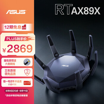 华硕(ASUS)RT-AX89X高通四核/电竞游戏路由器/双10G口/全千兆WiFi6路由器