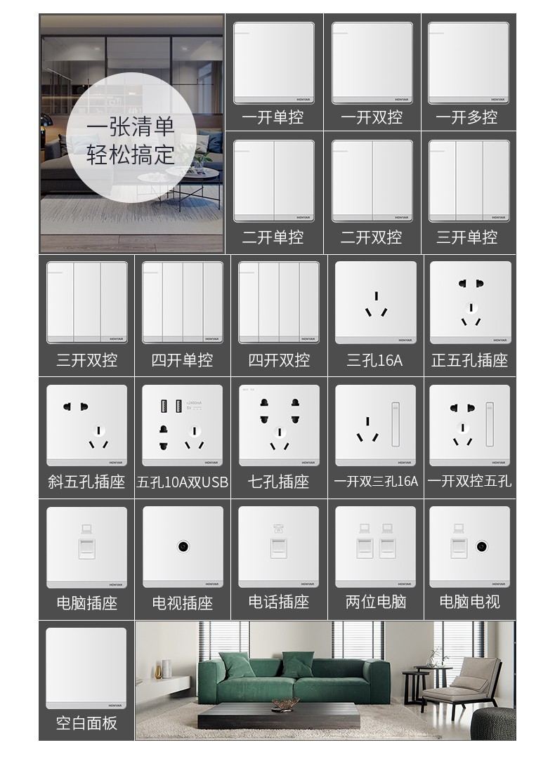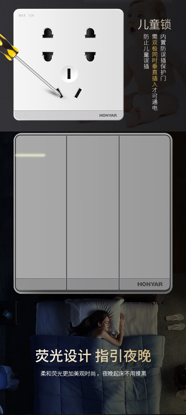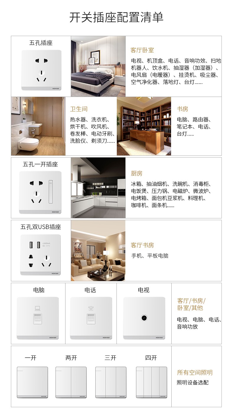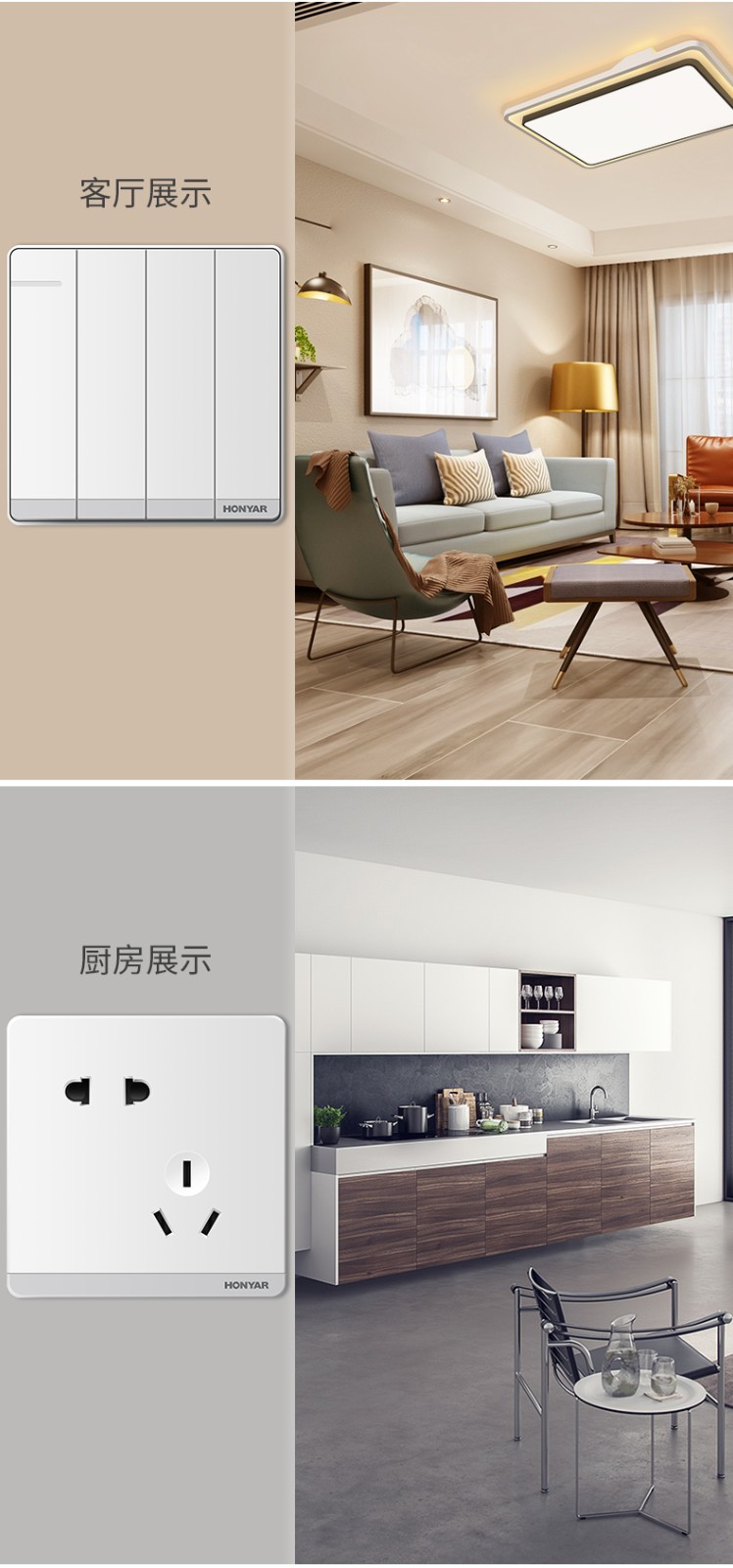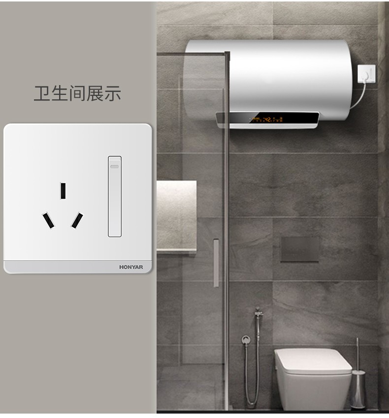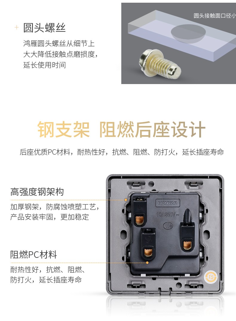 鸿雁(HONYAR)开关插座86型墙面暗装电源5孔无边框大板白10a五孔USB三孔家用开关Q86白色 斜五孔10只装