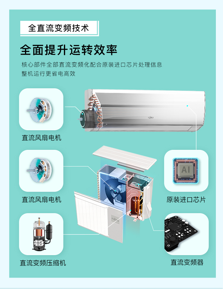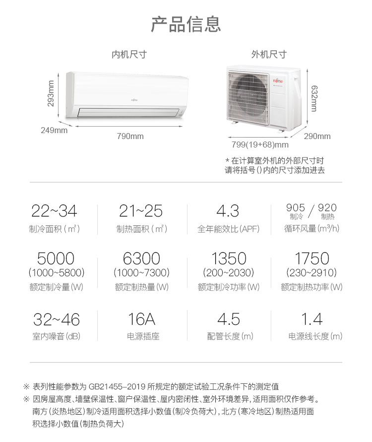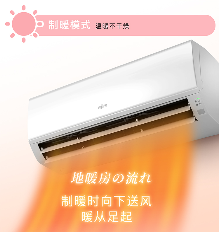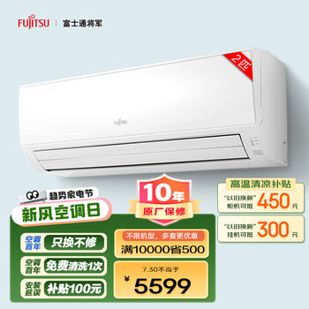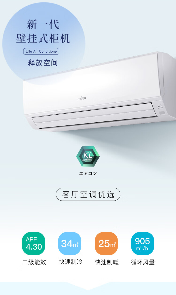 富士通 21-34㎡适用 新2级能效 2匹 全直流变频 简约空调 大循环风量ASQG18KLCA 白色 (KFR-50GW/Bpkla)
