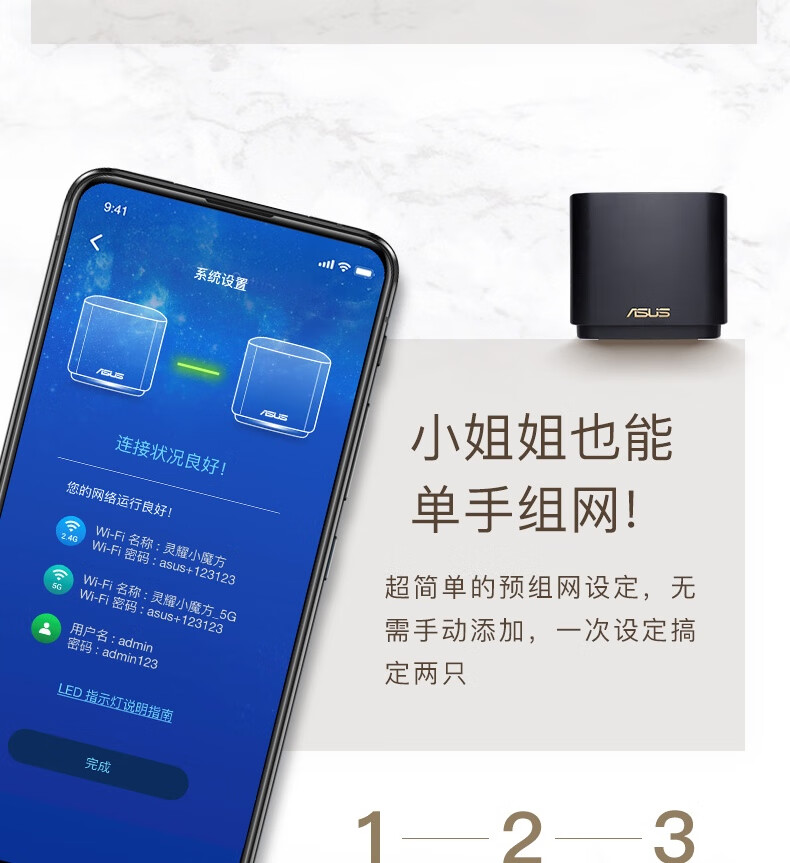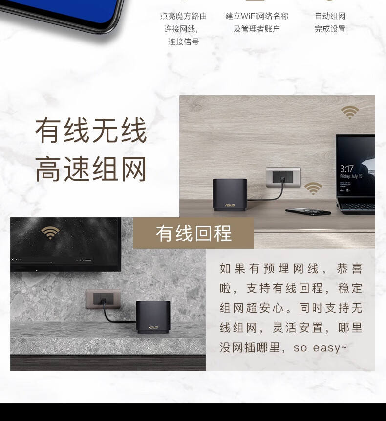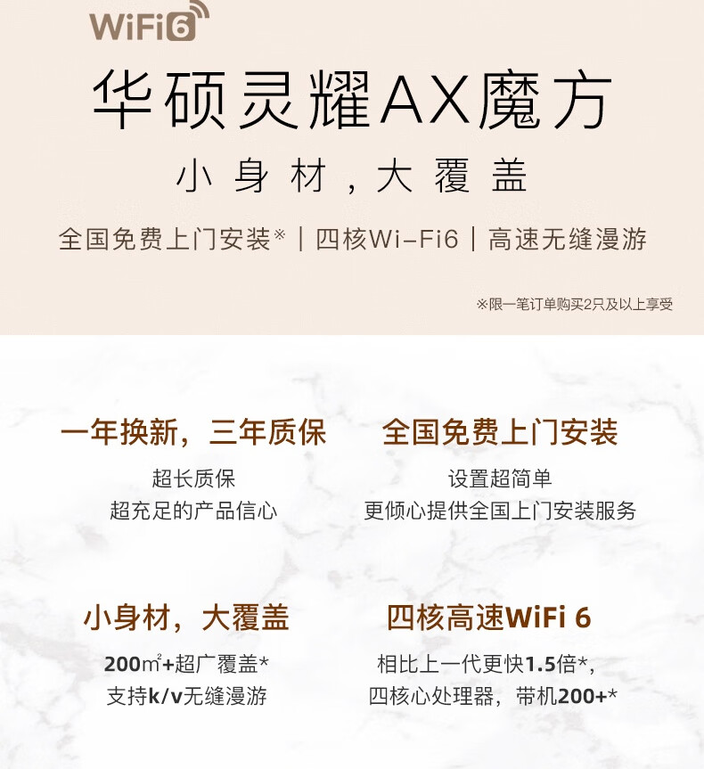 华硕(ASUS)灵耀AX魔方分布式路由器千兆黑色两只装/Mesh路由器/无线路由器/XD4/全屋WiFi6
